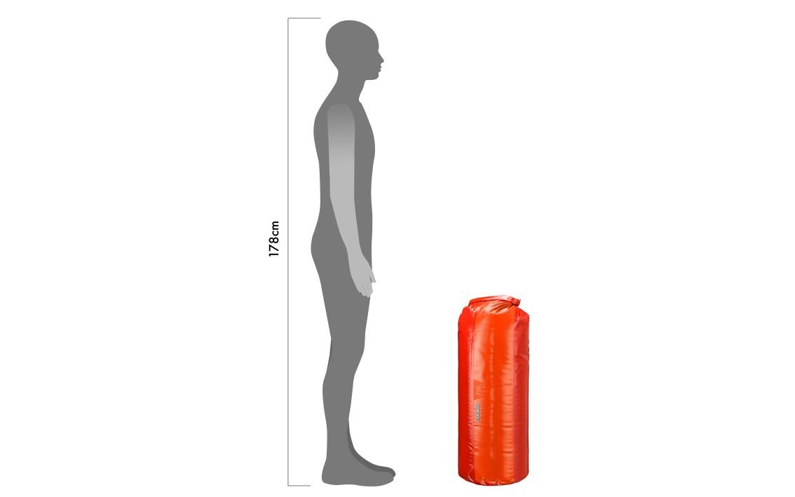 Proven roll closure and single stiffener bar ensure absolute waterproofness, protection and optimal packing volume. A reinforced base provides stability and easier loading. Height 75 cm, diameter 34 cm, 79 l capacity, weight 560 g, IP64, PVC-coated polyester