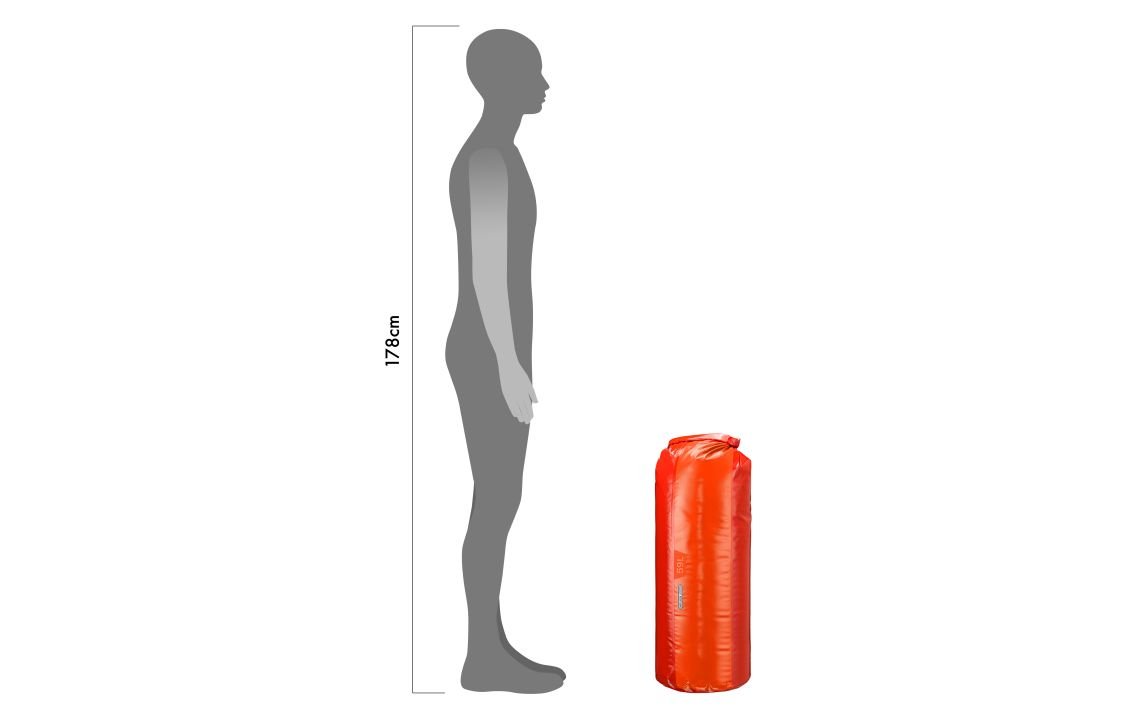 Proven roll closure and single stiffener bar ensure absolute waterproofness, protection and optimal packing volume. A reinforced base provides stability and easier loading. Height 70 cm, diameter 31 cm, 59 l capacity, weight 480 g, IP64, PVC-coated polyester