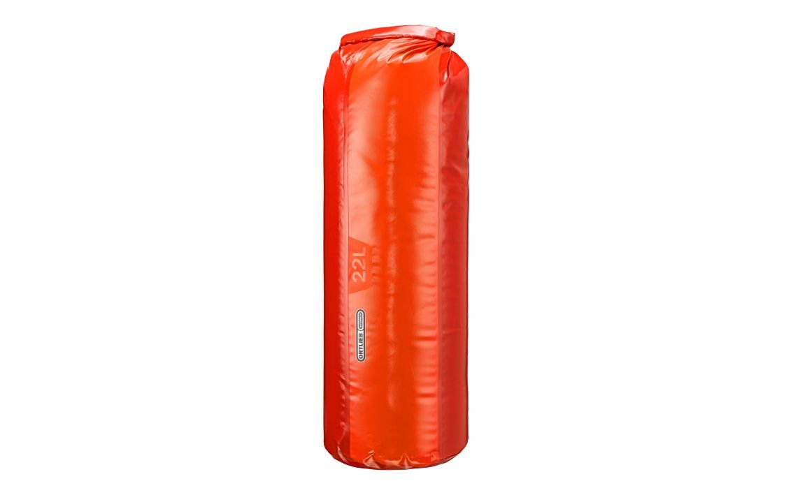 Proven roll closure and single stiffener bar ensure absolute waterproofness, protection and optimal packing volume. A reinforced base provides stability and easier loading. Height 52 cm, diameter 22 cm, 22 l capacity, weight 290 g, IP64, PVC-coated polyester