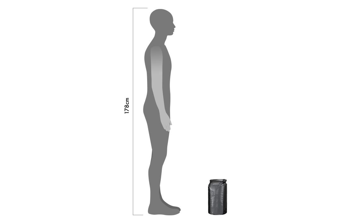 Proven roll closure and single stiffener bar ensure absolute waterproofness, protection and optimal packing volume. A reinforced base provides stability and easier loading. Height 20 cm, diameter 19 cm, 5 l capacity, weight 150 g, IP64, PVC-coated polyester