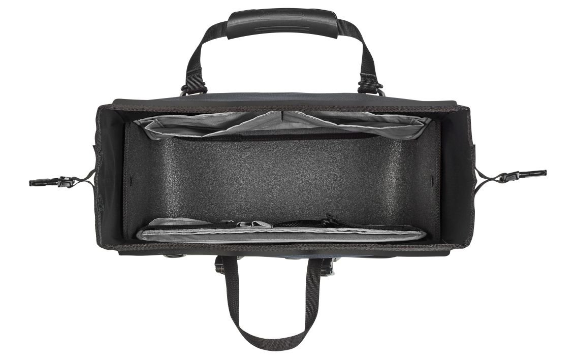 This waterproof bike briefcase with roll-top closure can be mounted on either the right or left side of the rack. The proven Quick-Lock 2.1 system allows quick, tool-free attachment and one-handed removal.