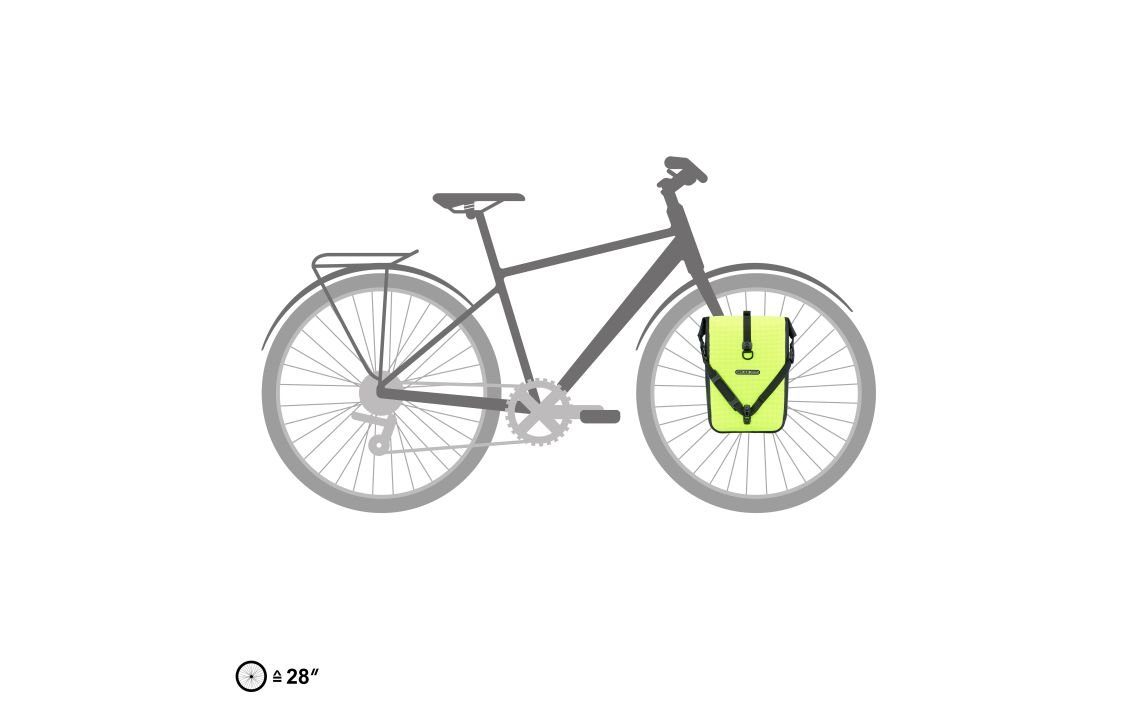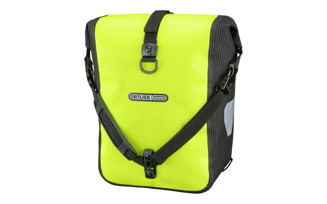 The ORTLIEB High-Vis Line is ideal for year-round riding and low-visibility conditions. Made from PU-coated Cordura fabric woven with highly reflective yarn, the entire bag acts as a large reflector to significantly improve visibility in traffic.
