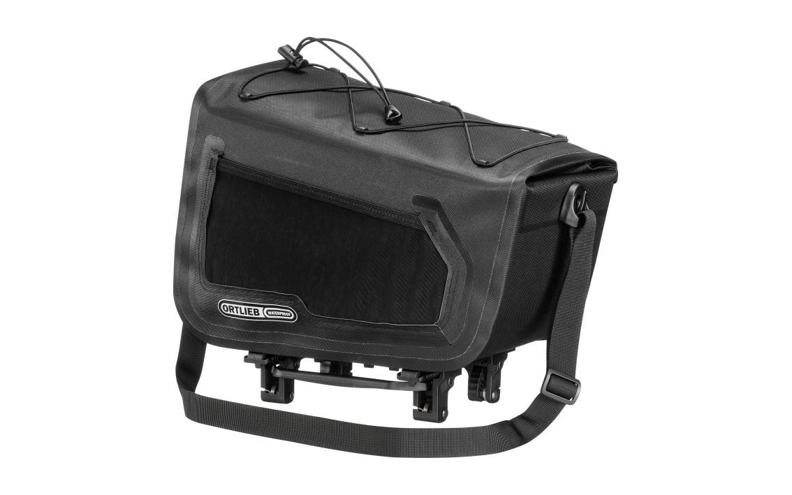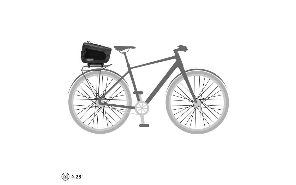 Waterproof and spacious, the Trunk-Bag is like the trunk of your e-bike. And thanks to the Top-Lock adapter, initial assembly takes no time at all, and the trunk can easily be removed at any time with a simple “click”. Part of ORTLIEB’s e-bike collection, the Trunk-Bag offers a volume of ten liters, which is enough storage space to take everything you need on a little bike tour.In addition to storage, the Trunk-Bag features a bottle mount, which is an elegant solution to the commonly challenging feat of mounting multiple bottle holders on an e-bike. The Trunk-Bag also has high-quality 3M Scotchlite reflector and dedicated space for attaching a rear light — a real plus in terms of safety. The exterior cord on the top enables a jacket to be stowed away quickly, and the outer mesh pocket is ideal for storing small things. But thanks to the magnetic lid closure, opening and closing the Trunk-Bag is so fast that anything can be stowed inside the bag almost as quickly. In the event that the bike is parked unattended, the Trunk-Bag with the top lock adapter can easily be removed from the bike with just one hand, and the shoulder strap makes carrying the bag with you comfortable and convenient.The Trunk-Bag can carry loads of up to 10 kilos / 22 lbs and is compatible with almost all luggage carriers 80 to 160 mm in width and with a tube diameter of 8 to 16 mm.