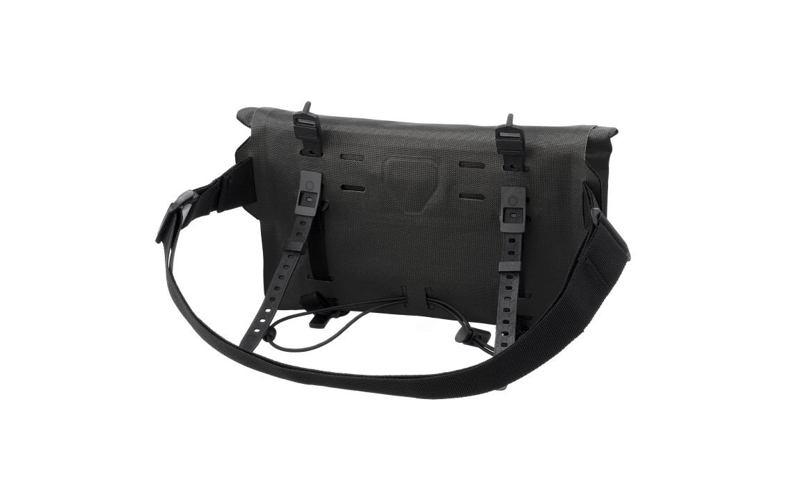 The Velo-Sling is equipped with various daisy chains for transporting additional accessories. You can attach the included straps here, for example to secure a jacket or other luggage to the bottom of the bag. When the bag is fully loaded, the straps also help to secure the opening or the inside if the roll closure can no longer be closed.