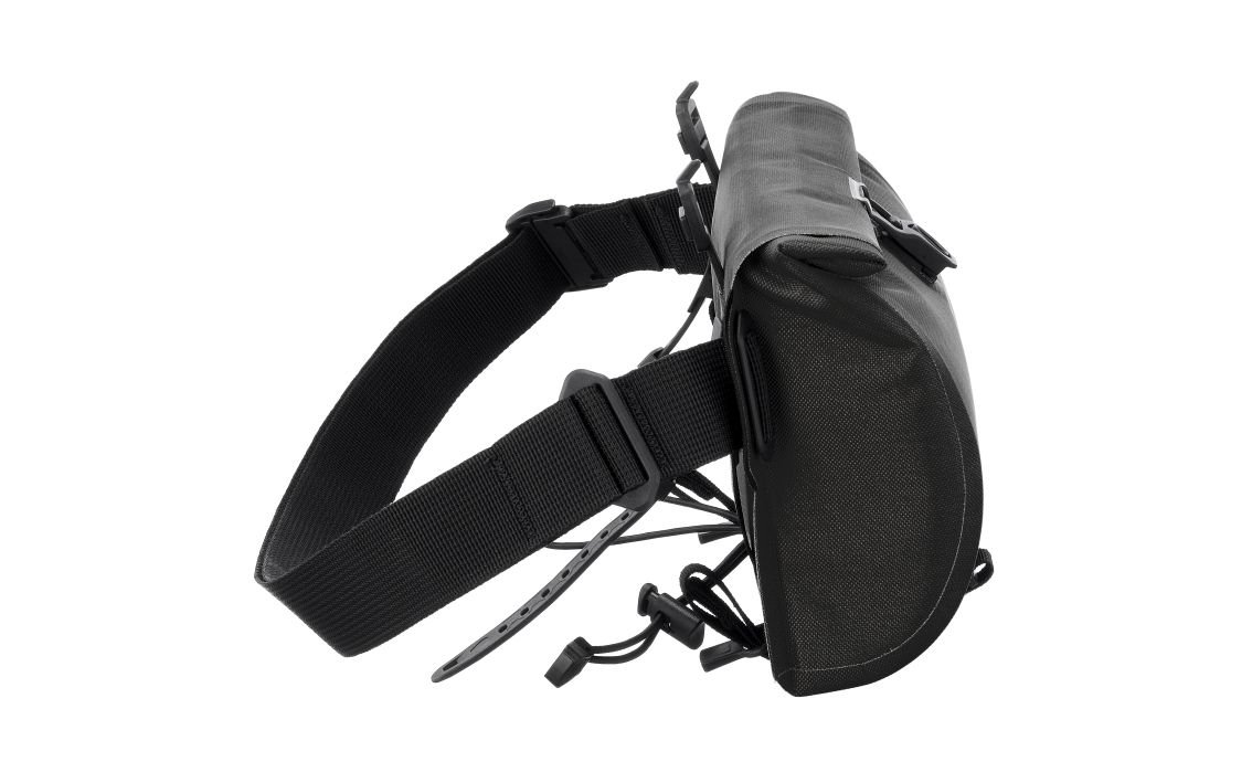 Thanks to the wide and comfortable shoulder strap, the Velo-Sling is comfortable to carry. To keep the strap out of the way when you attach the bag to your handlebars, it can be easily removed or stowed on the bag itself. The two included O-straps and foam spacers ensure that the bag sits firmly and stably on the handlebars. An additional rubber band strengthens the mount, prevents wobbling, and can also be used flexibly to secure other equipment that you want to attach to the outside of the bag.