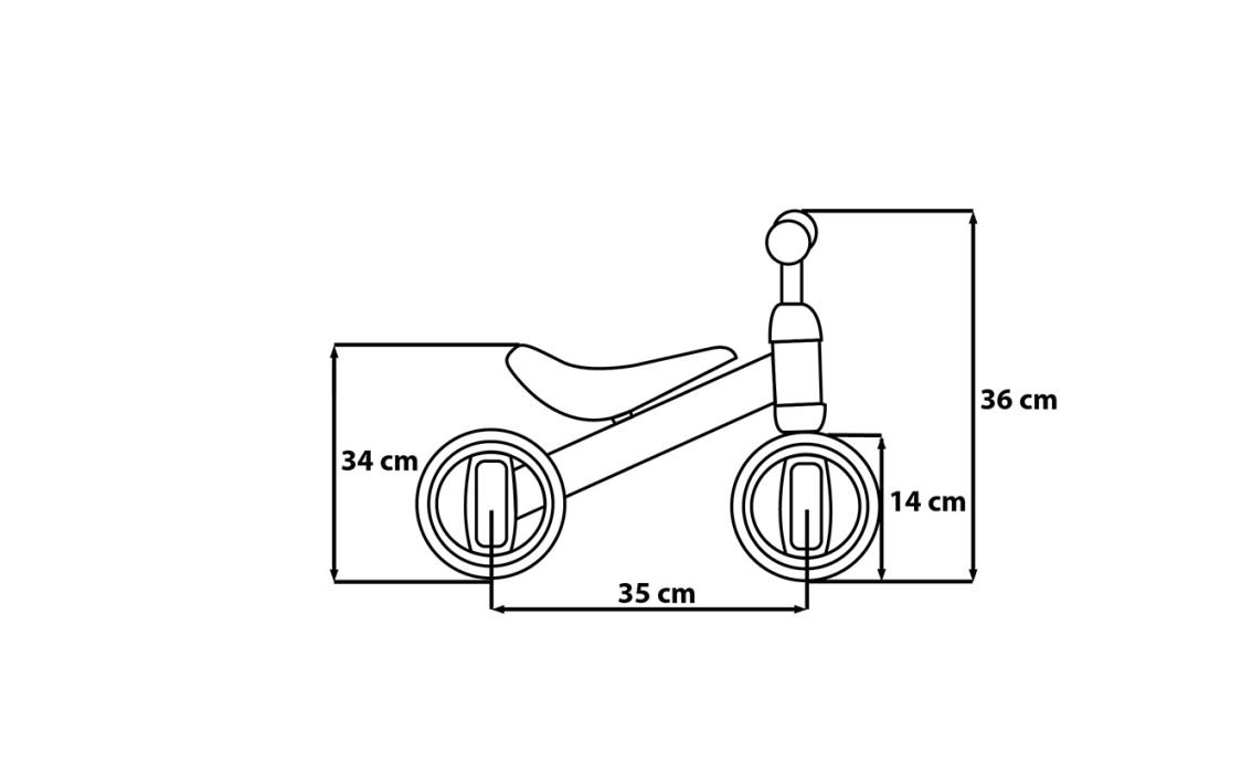 Bike dimensions: 37×19×47cm, seat height: 21 cm, bike net weight: 1,38 kg, maximum user weight: 20 kg