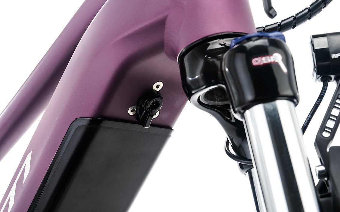 For women, e-bike, 18″, matte purple gray