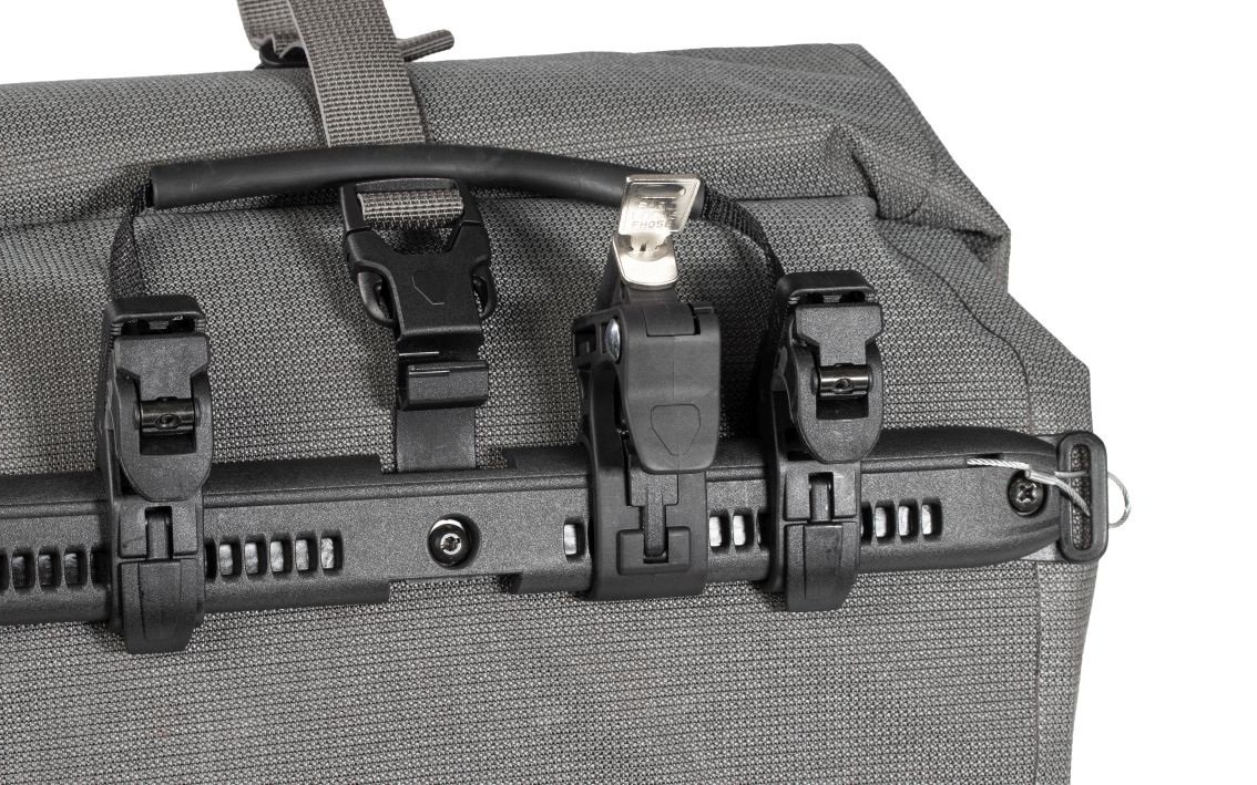 For added security, optional anti-theft devices (E124/E125) for QL2.1 bags can be used to secure the roll-top closure or other items such as helmets.