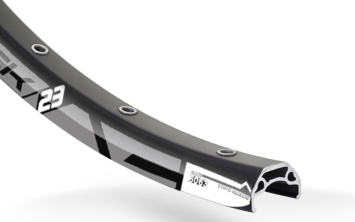 584 x 23, 32H, with eyelets, aluminium, double wall, black, 532 g, ERD 571 mm