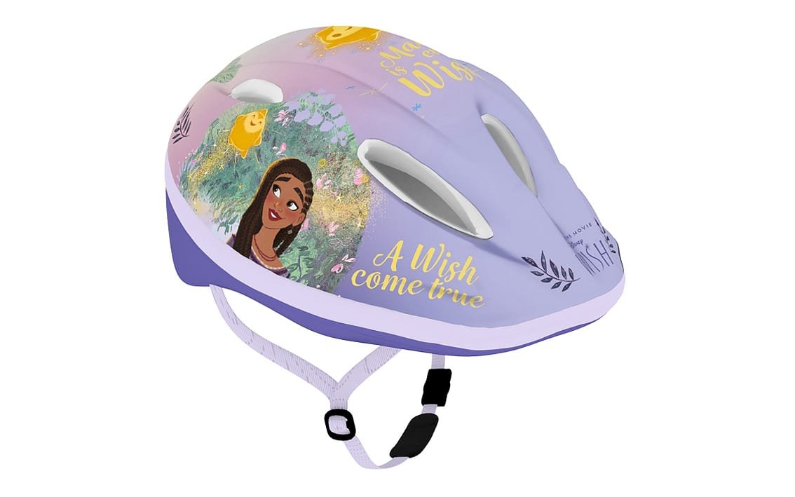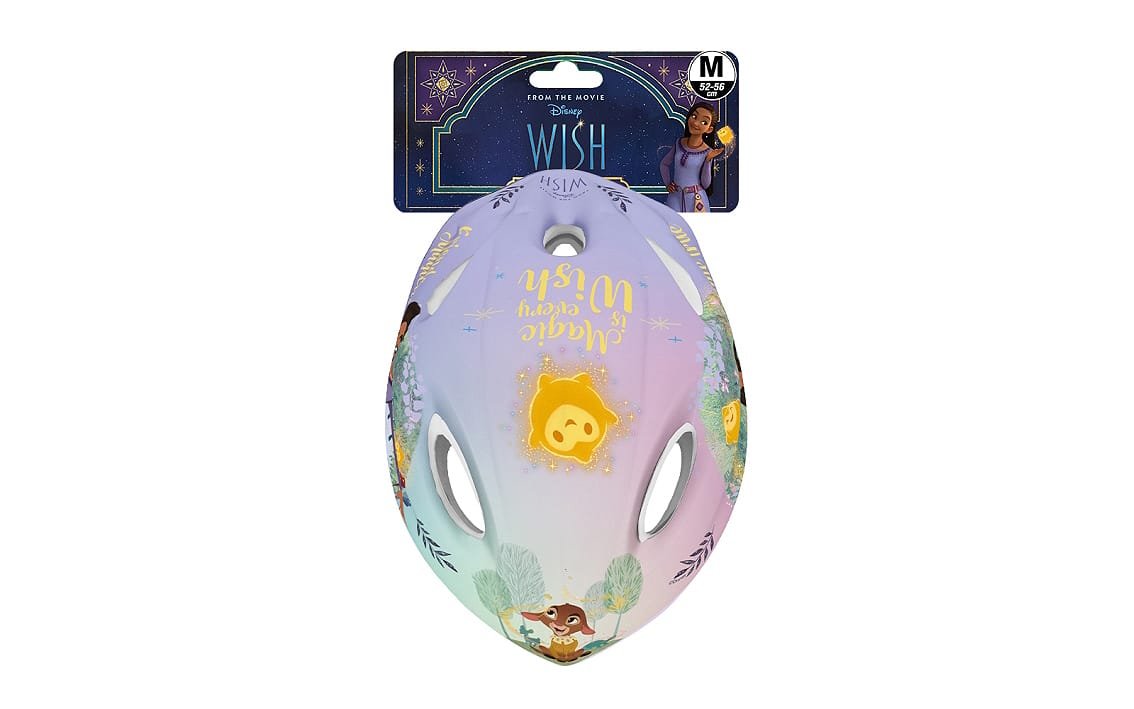 Helmet is recommended for kids while using bikes, skates, scooters, etc. Outside helmet is made of PVC and decorated with characters from Wish, Inside is made of the impact absorbing EPS foam. Helmet is equipped with adjusting knob to adjust the helmet to the baby’s head, straps on both sides clipped under chin with a buckle with a soft pad. There are ventilation holes in the shell of the helmet.