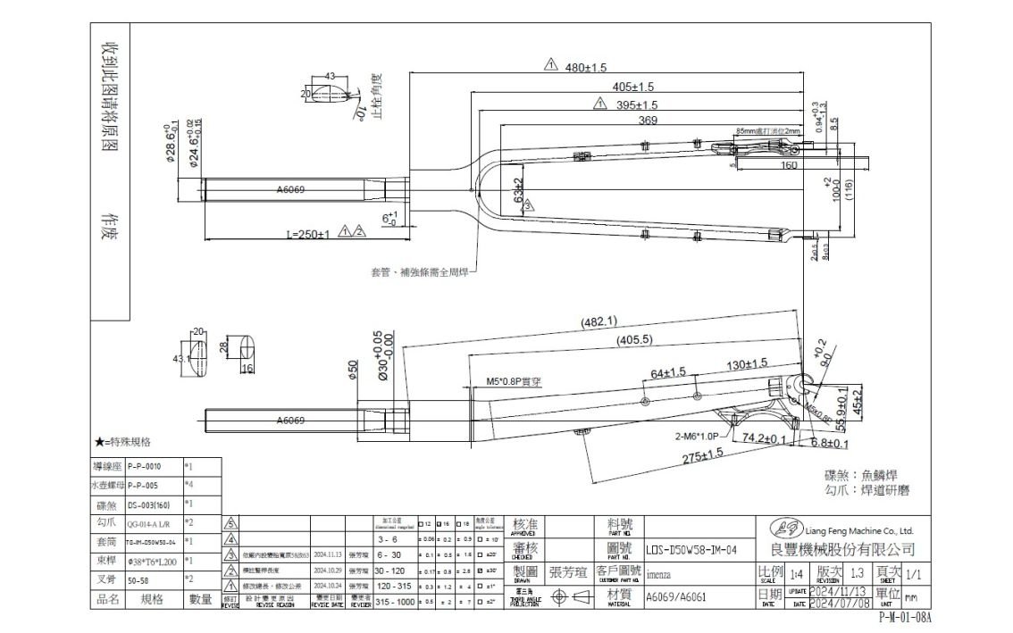 LOS-D50W58-IM-04(V1.2)2 – 9 x 100 mm QR, Post Mount D-Brake, 28.6 mm kaelus, axle to crown 480 mm (optimeeritud kasutamiseks amordi asemel), maksimaalne rehvi laius 55 mm