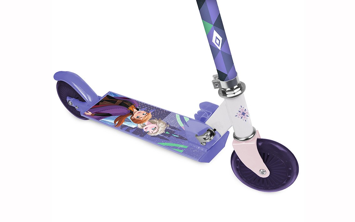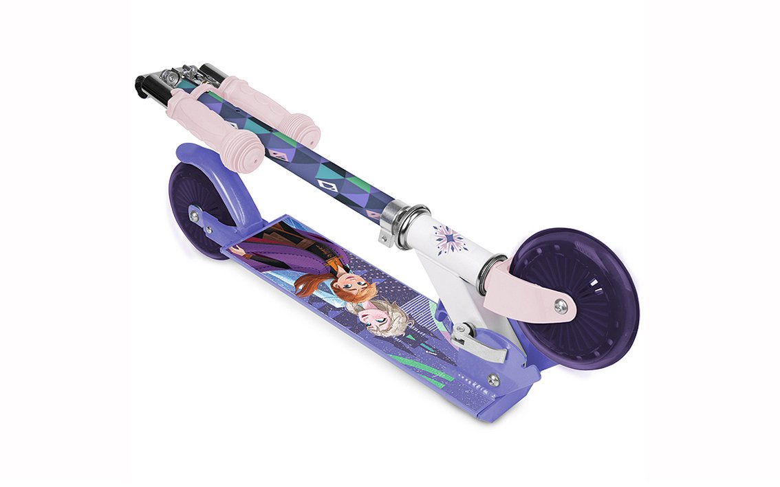 Two-wheel scooter is perfect for outdoor play. Colourful characters from Disney’s cartoons will make driving fun for your child. The large adjustment range of the steering wheel makes easier for bigger or smaller children to ride the scooter. Rubber grips increase comfort, the platform is reinforced with non-slip material protecting against slipping. Polyurethane wheels increase cushioning when driving on uneven surfaces, and high-quality ABEC-7 bearings ensure a smooth ride. Scooter has a foot brake for increased safety and easy convenient folding system.