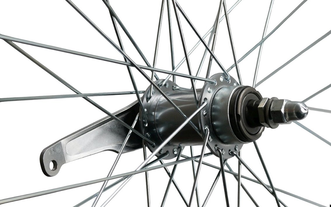 SH-WHEEL-132 – 622 x 18, 117 mm OLD, Shimano CB-E110 viena ātruma bremžu rumba, 36H, alumīnija dubultsienu loka, sudraba krāsā.