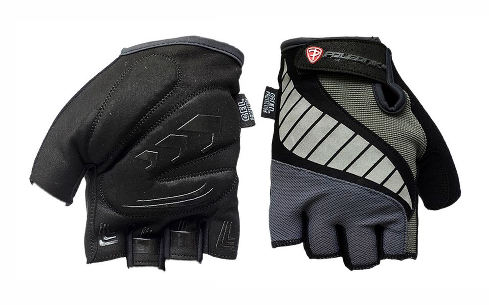 Palm: sintētiskā āda, gēla triecienu spilventiņi, silikona cilpiņas, neslīdoša silikona apdruka