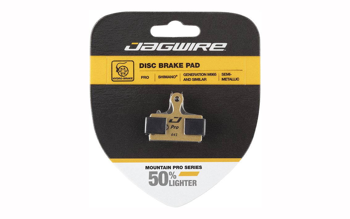 For riders looking for premium performance, Jagwire Pro Semi-Metallic pads feature a lightweight aluminum backing plate, reducing the weight by nearly 50%. The high- performance semi-metallic compound combines the low-noise and positive braking feel of a resin pad with the longevity and wet-weather performance of a metallic pad.