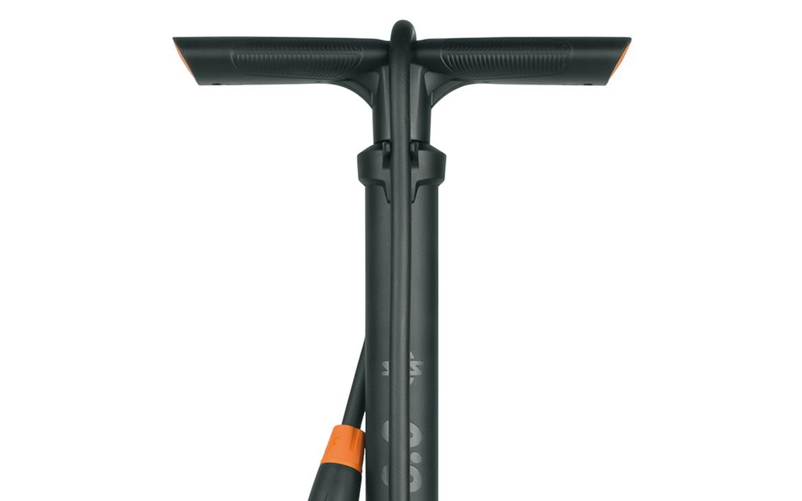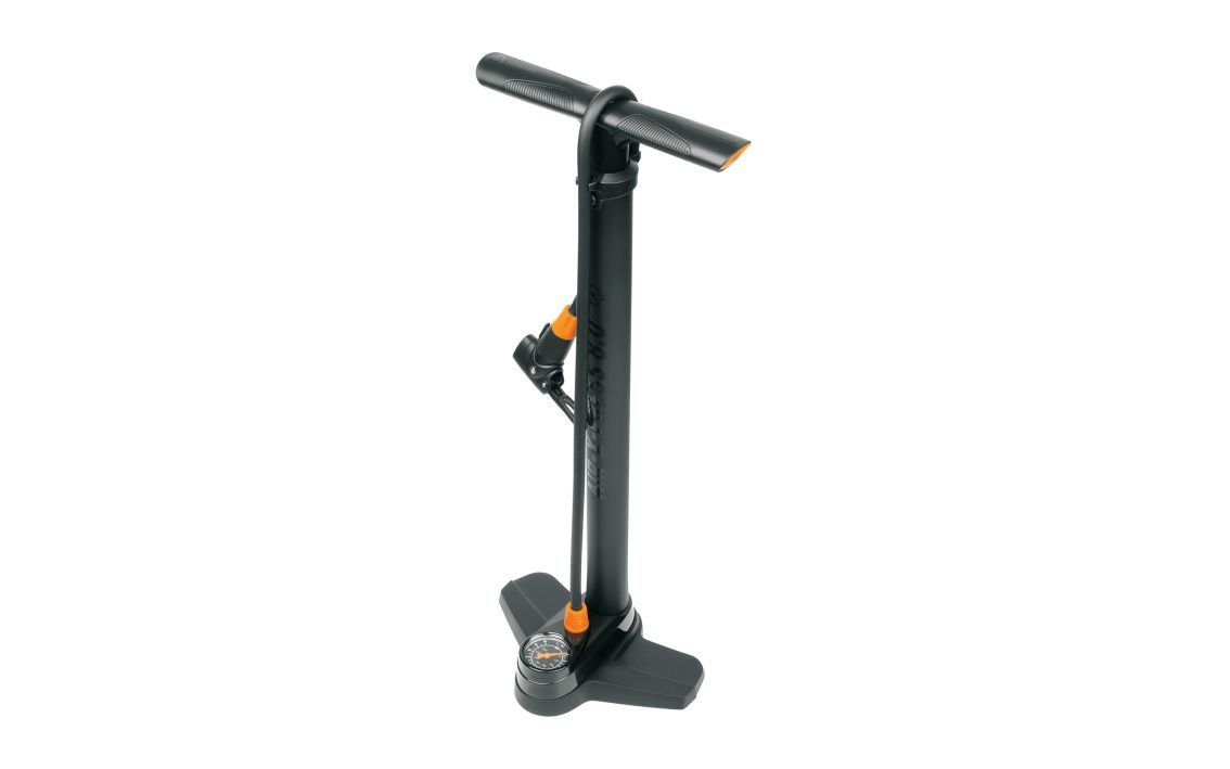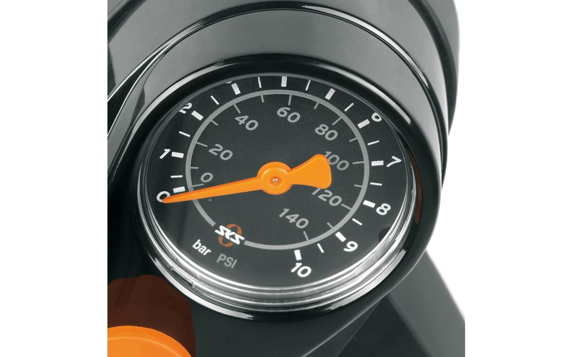 Facelift of our sturdy and light-weight plastic floor pump with accurate gauge for precise pressure control. Now 50 mm higher as before. Displays both bar and psi. Convenient handling due to the proven SKS MULTI VALVE pump head with thumb lock lever. Inflates easily up to 8 bar / 115 psi.