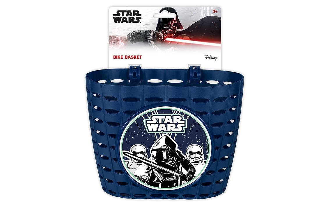 Bike basket is designed for mounting on the handlebar, it is made of colorful PVC and decorated with Star Wars characters. Easy to mount onto handlebar by straps included in set.