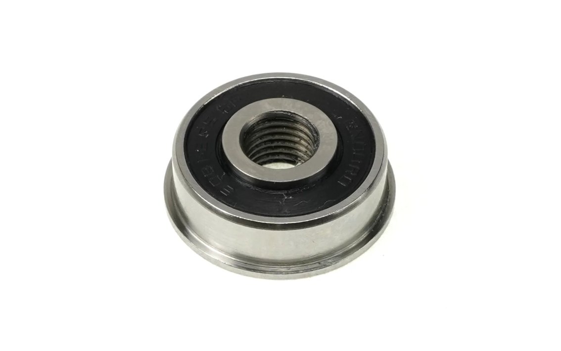 This ABEC-3 bearing features deep-groove design races, with Grade 10 balls, dual rubber seals and 90% fill with high pressure water proof grease to withstand daily abuse of use and the elements. The flanged design ensures precise insertion into through-holes in swing-arms and suspension linkages while the extended inner race eliminates the need for extra spacers to connect suspension linkages.