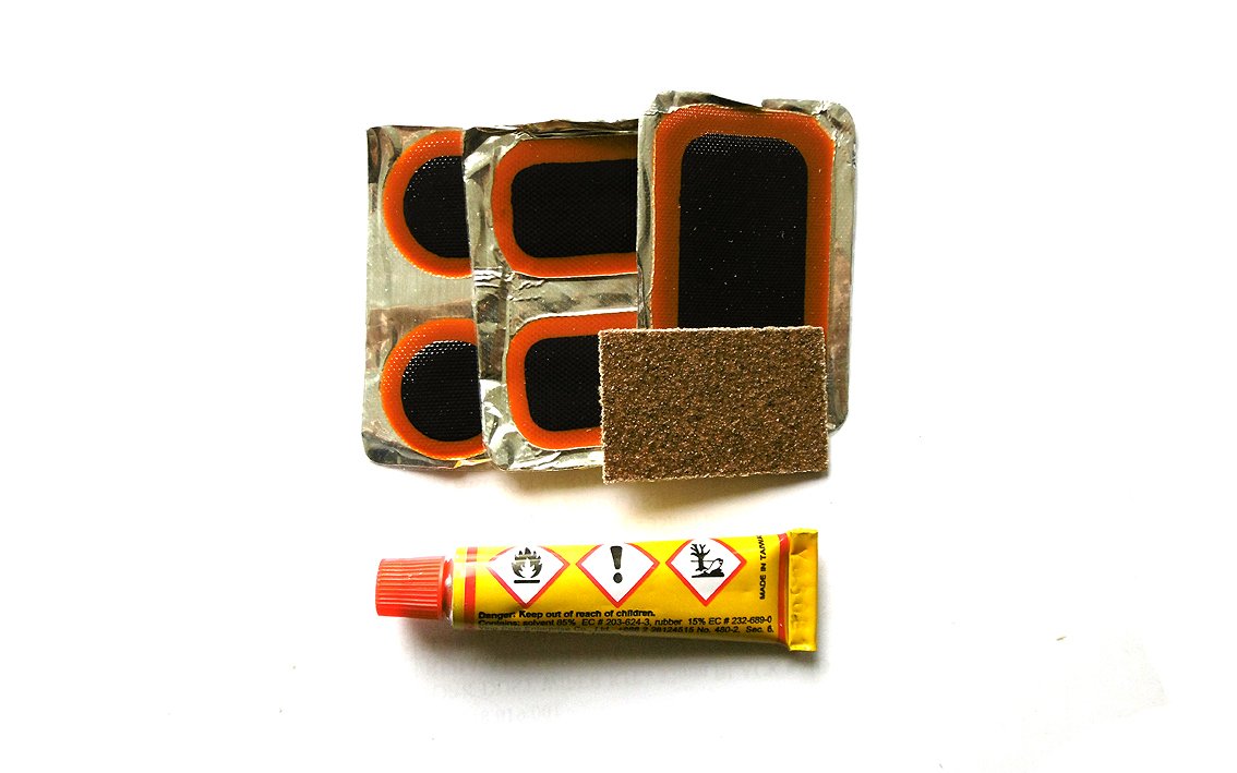 – 5 ielāpi, 8 ml līmes tūbiņā, smilšpapīrs, kastītē –