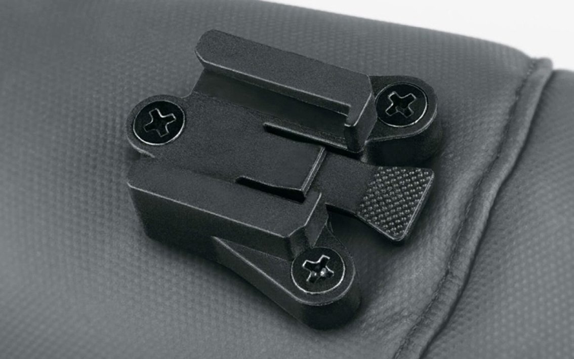 The small lightweight adapter is integrated discreetly under the saddle. Once mounted with two screws, the bag can be easily pushed onto the adapter. The saddle bag can be removed by simply pressing the lever.