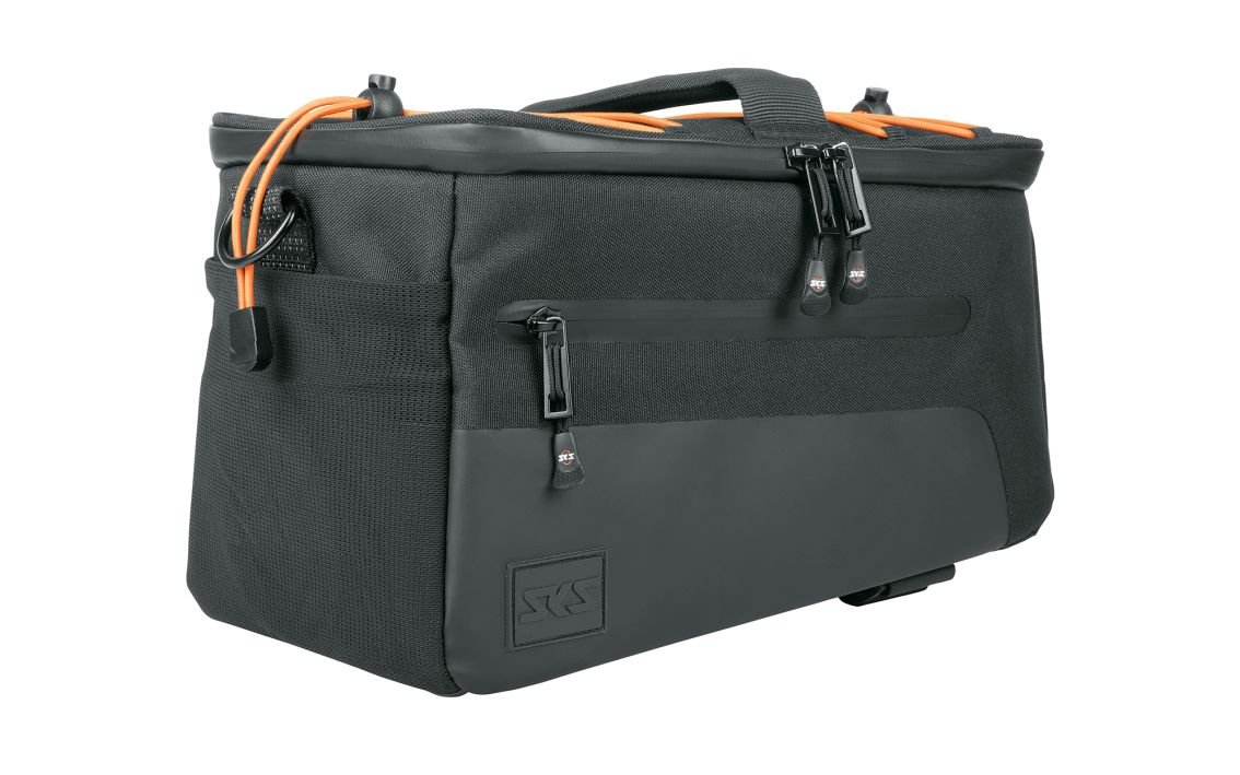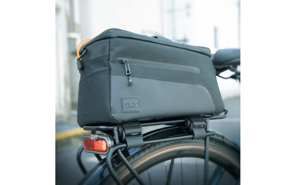 Robust, stylish and flexible: The INFINITY URBAN TRUNKBAG made of water-resistant material impresses when shopping, commuting and travelling. It fits perfectly on the INFINITY UNIVERSAL, but can also be mounted on all common luggage racks. On the one hand, the bike bag is compatible with the MIK, AVS, MonkeyLoad, Racktime, XLC CarryMore / i-Rack and KLICKfix adapter systems. The adapters are attached to the underside of the bag with screws, which means that you can easily use existing luggage rack plates. On the other hand, it can also be mounted with Hypalon Velcro straps that can be shortened. An additional strap can optionally be fixed to the seat post.