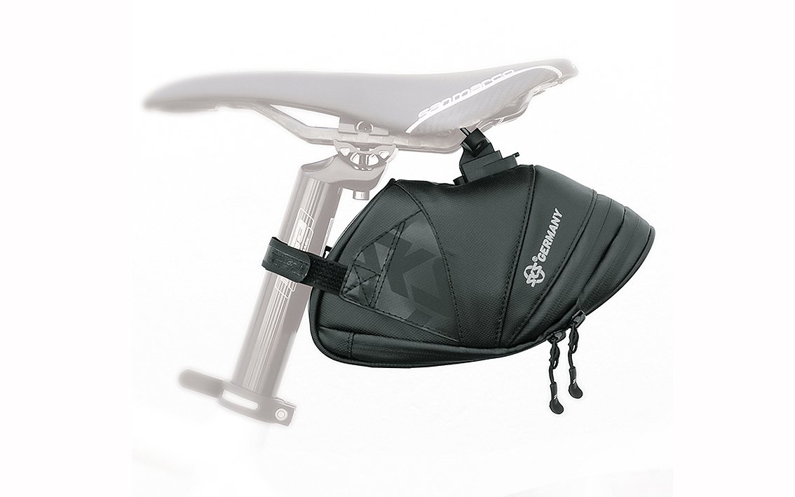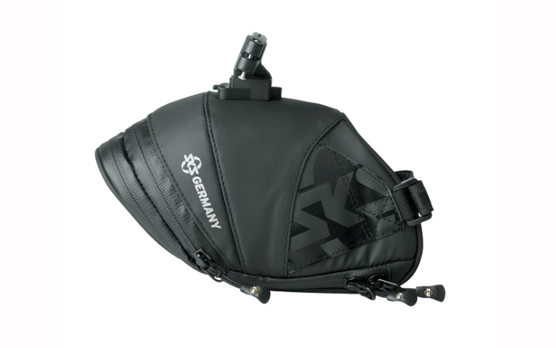 Robust and durable. Durable material made from rubberised, water-repellent fabric make the EXPLORER bicycle bag a must for every mountain biker. Reflective elements like the SKS logo add safety. Besides providing plenty of space for tools, replacement tubes, and personal items, this bag features a laminated zipper with ergonomic easy-zip, secure inside pocket, and orange-coloured lining to make finding items easier.