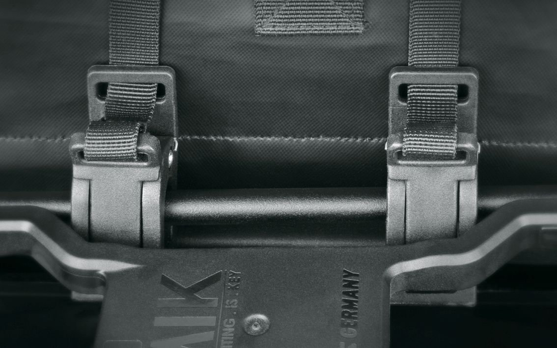 You can travel safely with your whole kit and caboodle! The chic INFINITY URBAN SIDE BAG offers plenty of space for equipment, a laptop or purchases with a capacity of approx. 20 litres. It is attached to the stays of the pannier rack with two sturdy hooks and can also be fixed in place with the lower swivel hook. This also prevents the bag swinging sideways while cycling. Thanks to the large adjustment range of the hooks, the bike bag can be attached not only to the INFINITY UNIVERSAL, but also to almost any pannier rack.