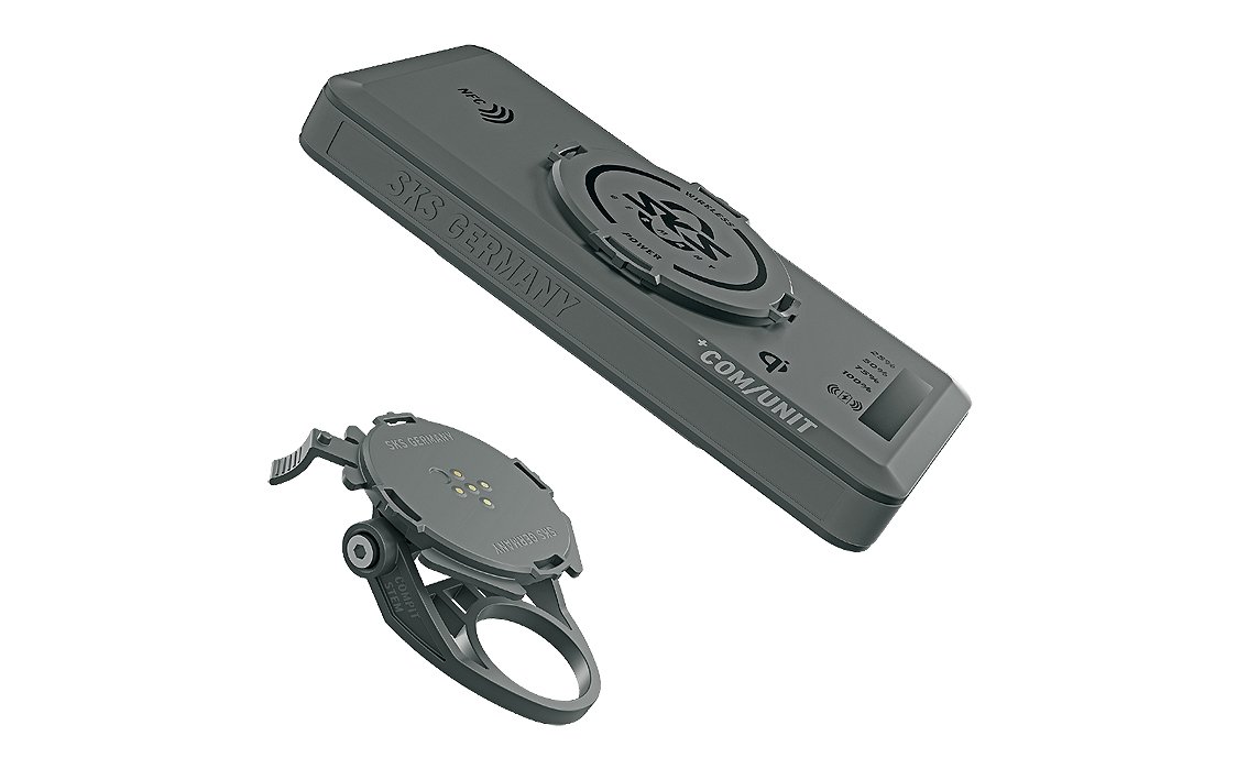 11800 – COMPIT/STEM+ kātu stiprināšanai sastāv no viedtālruņa turētāja un strāvas bankas ar integrētu NFC mikroshēmu. Jebkuru mobilo ierīci, kas aprīkota ar bezvadu uzlādes funkciju, var pievienot +COM/UNIT un uzlādēt, atrodoties ceļā. Nepieciešams īpašs viedtālruņa vāciņš/somiņa.