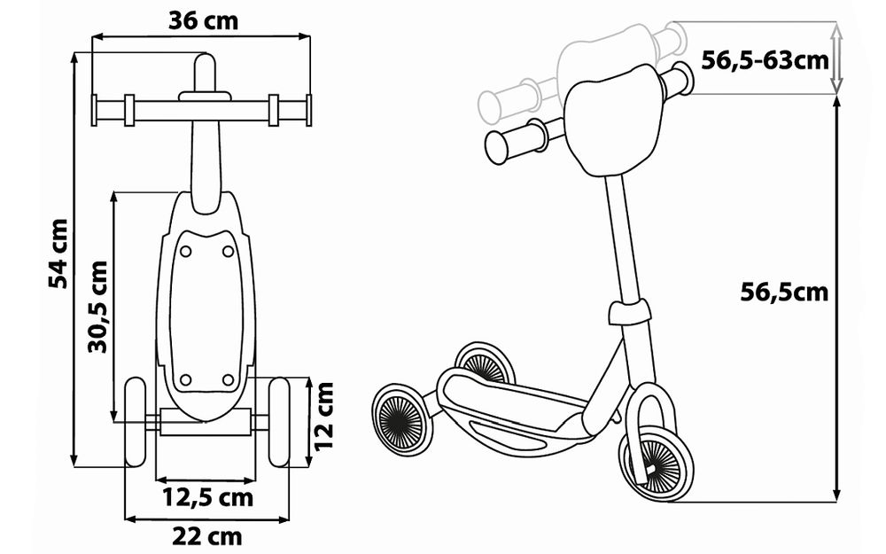 Thanks to the regulated steering wheel scooter can be adjusted to children height.