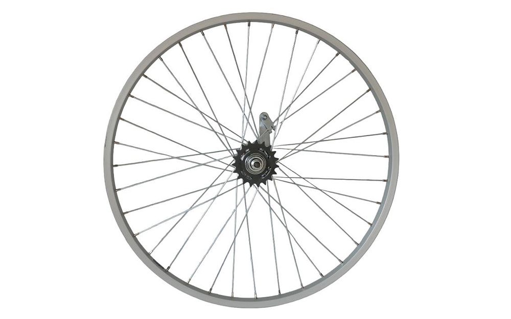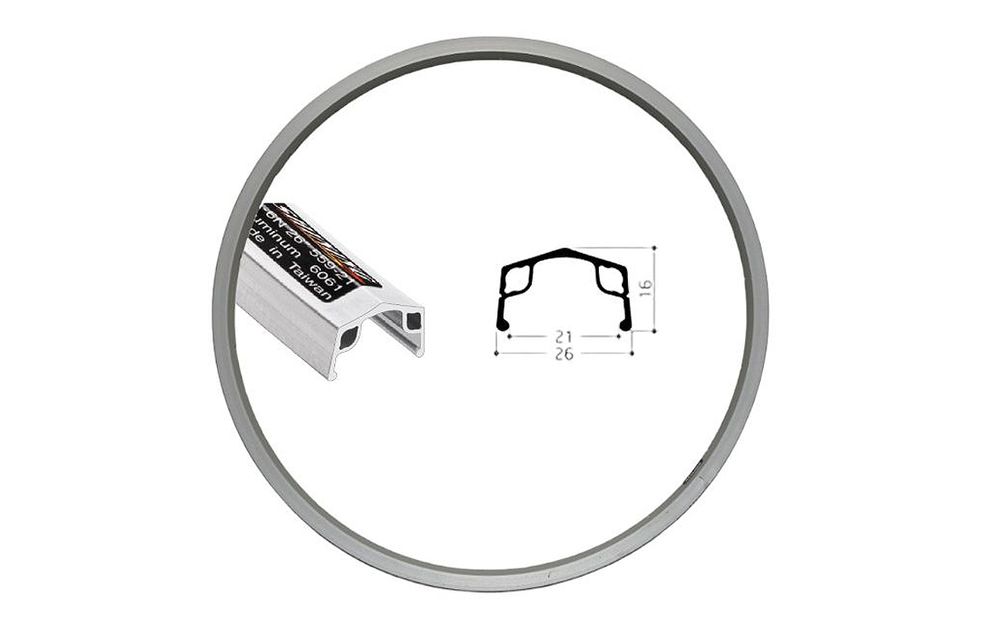 SH-WHEEL-120 – 507 x 21, 110 mm OLD/158 mm ass, Velosteel vienātruma bremžu rumba, 19T, 36H, alumīnija vienslāņu loka, sudraba krāsā. –