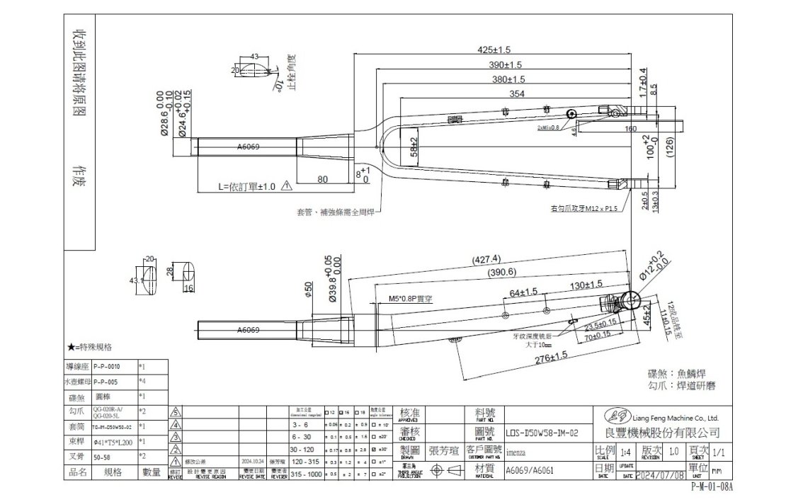 LOS-D50W58-IM-02(V1.2) – 12 x 100 mm thru axle, Flat Mount D-Brake, 38.1/28.6 mm konusveida stūres caurule, axle to crown 425 mm, maksimālais riepas platums 50 mm, alumīnijs –
