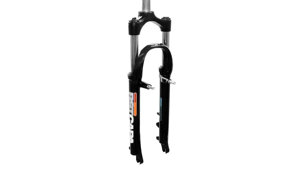 Capa-T-26-DVBT-BLK-254 – 80 mm gājiens, spirālatsperes, D + V-bremzes, 25.4 mm (ārējais) diametrs, 260 mm stūres garums ar 50 mm vītni, 9 x 100 mm QR ass, matēti melns –