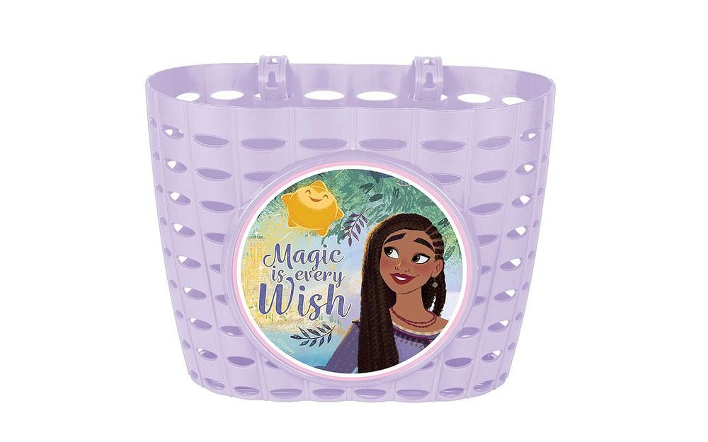 Bike basket is designed for mounting on the handlebar, it is made of colorful PVC and decorated with Disney characters. Easy to mount onto handlebar by straps included in set.