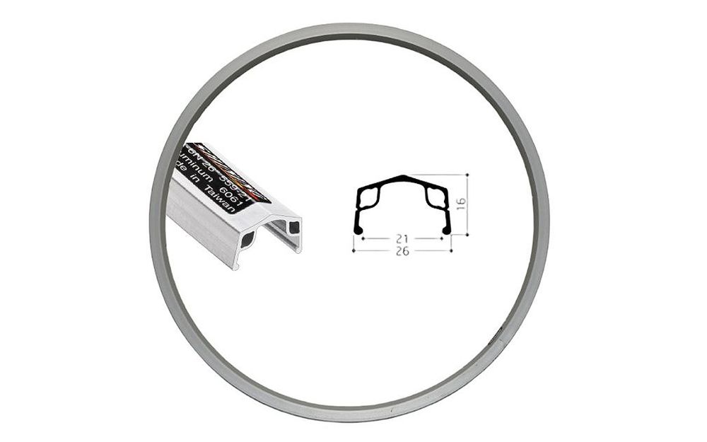 SH-WHEEL-154 – 507 x 21, 9 x 100 mm uzgriežņa tips, bez QR, Izvēlētā rumba, 36H, V-Brake, alumīnija viensienas loka, sudraba krāsā. –