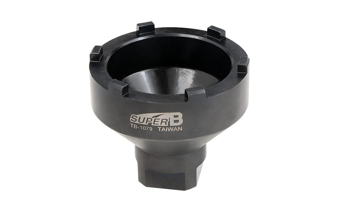 TB-1079 – Piemērots Panasonic® piedziņas blokiem ar 6 zobu Ø62 mm ķēdes gredzena fiksatoriem un apakšējās kronšteina kausiem. Lieto ar 1/2′′ uzgriežņu atslēgu vai 24 mm atslēgu ar atvērtu galu. –