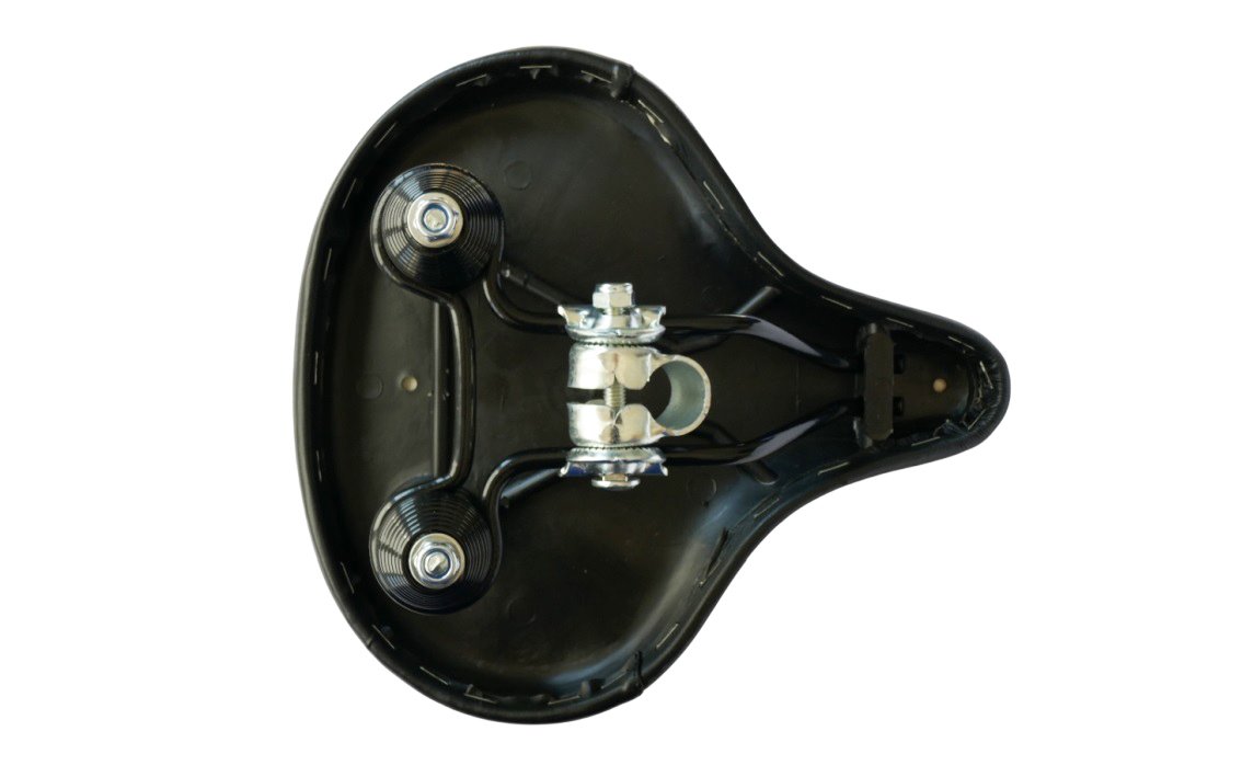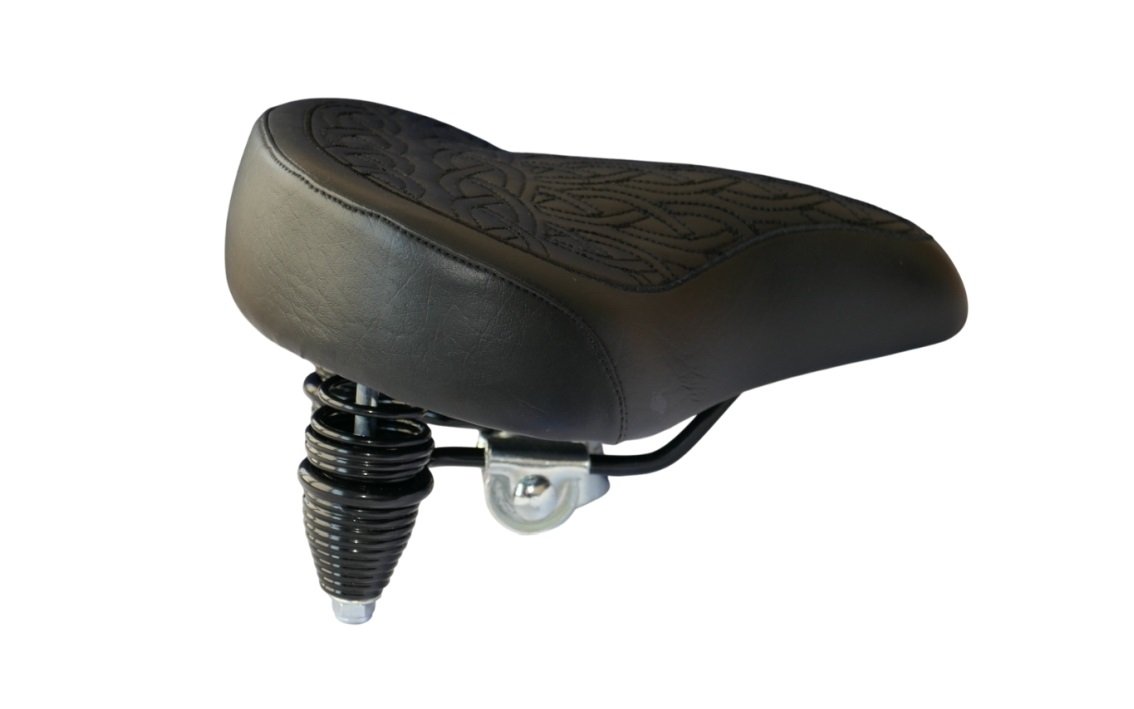 SO-1561 saddle with a classic shape dedicated to Beach Cruiser bikes. Stable, large, comfortable. Suspended on a double-acting spring that effectively reduces vibrations and oscillations generated while riding.