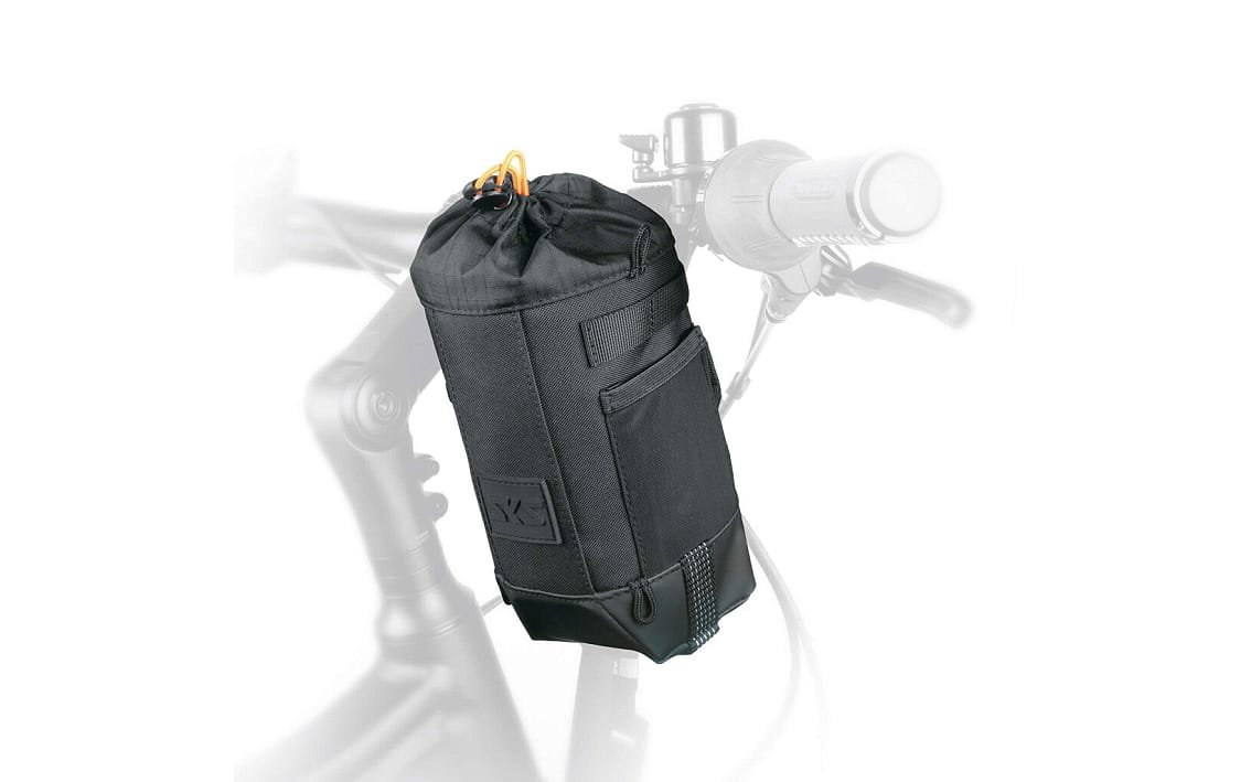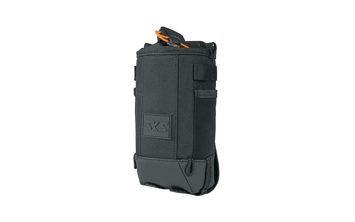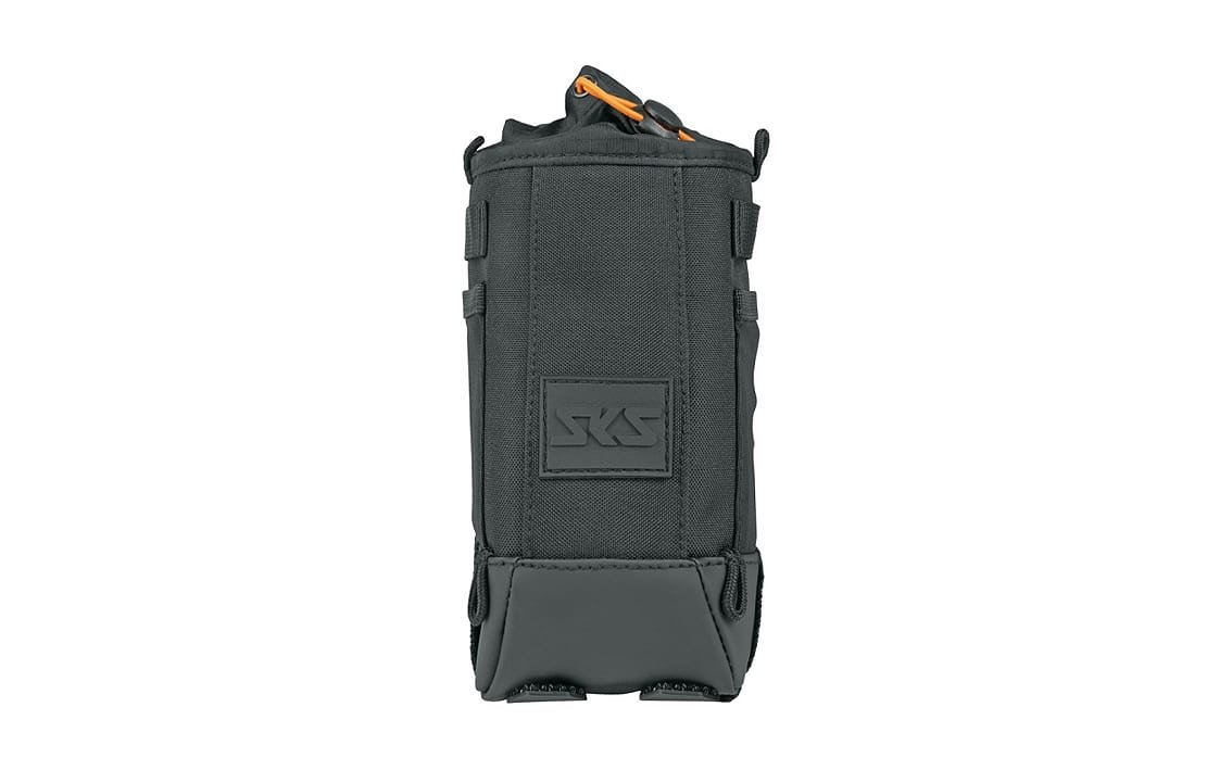 The elastic cord allows quick access to your items. The SKS bike bag is made of water-repellent, durable material and is equipped with numerous features. These include loops for attaching carabiner hooks, reflective elements, a water drain in the reinforced base and a shoulder strap for convenient transport.