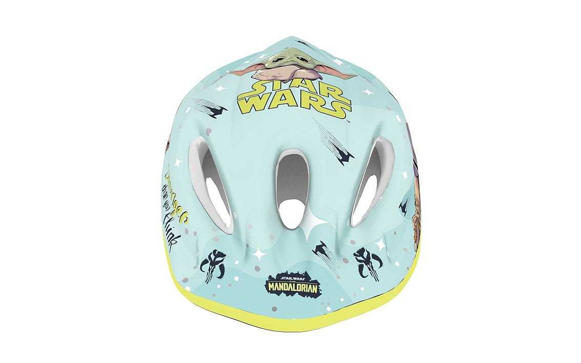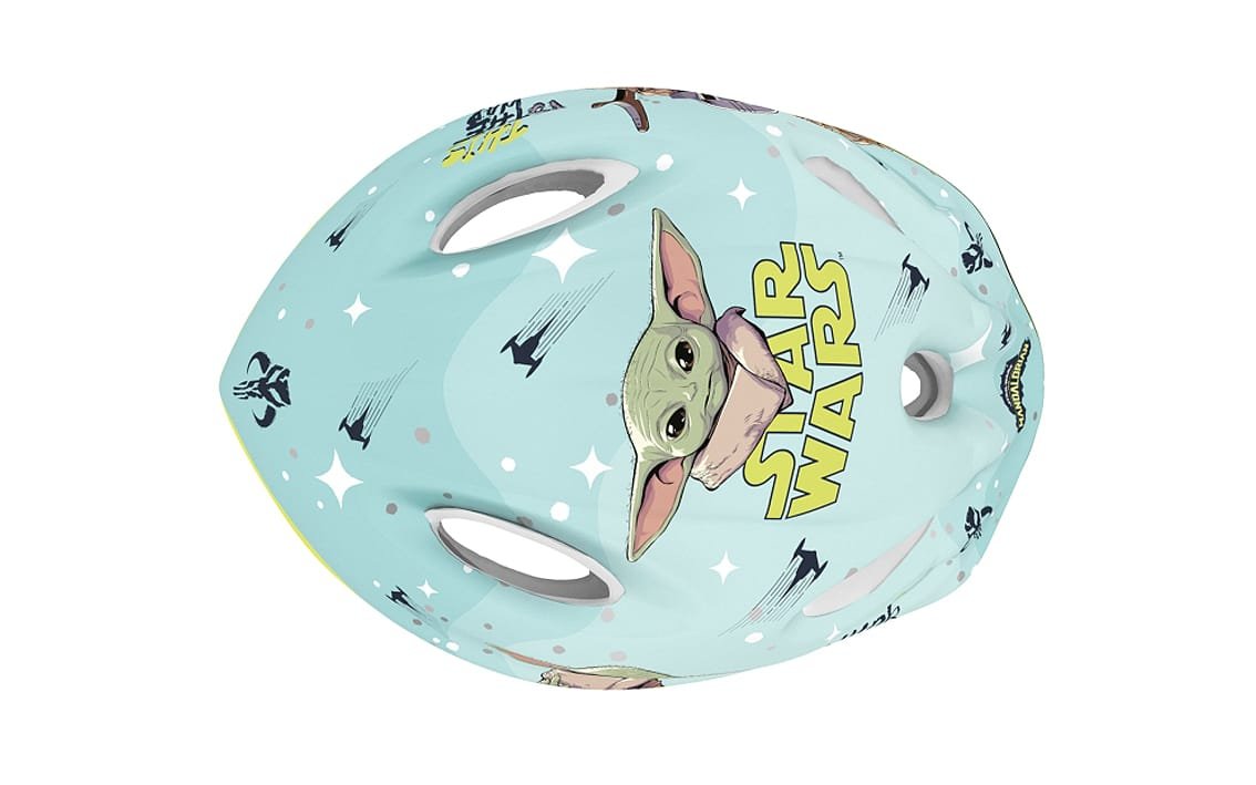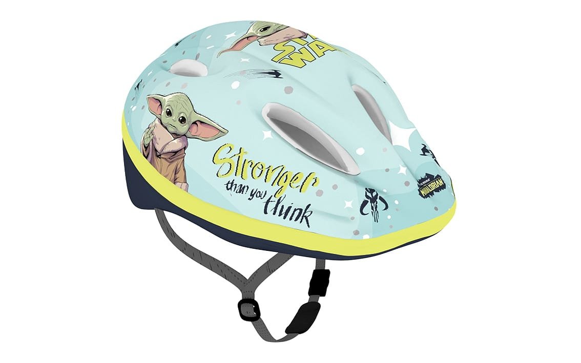Helmet is recommended for kids while using bikes, skates, scooters, etc. Outside helmet is made of PVC and decorated with characters from Star Wars, Inside is made of the impact absorbing EPS foam. Helmet is equipped with adjusting knob to adjust the helmet to the baby’s head, straps on both sides clipped under chin with a buckle with a soft pad. There are ventilation holes in the shell of the helmet.