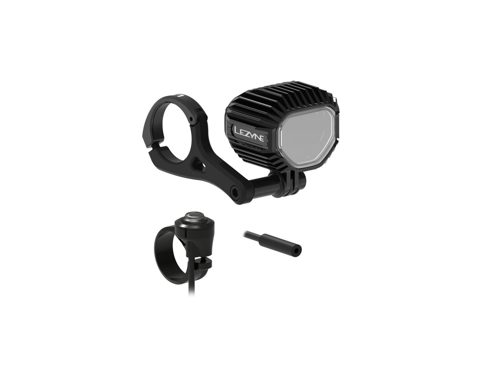 • High Beam 1250 lumen / Low Beam 1000 lumen • StVZO-Optimized lens (German regulation) • Complies with ISO 6742 certification standards • Integrated CNC-machined and polished aluminum body with cooling fins • Thermal Protection Safety Feature reduces light output for safety and efficiency • Rigorously tested to IPX7 Waterproofing standards • Hi-Beam / Low-Beam switch with mode indicator • E-bike compatible 11 – 15V input, 8.5W LB / 16W HB • Includes remote switch, and CNC Machined Aluminum Mega Mount L • 130cm power cable included • Bosch BES3 port included