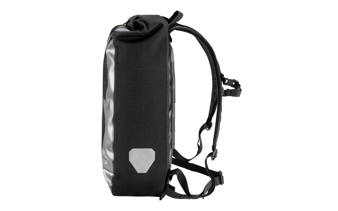 Simply clever: the Messenger-Bag Pro allows couriers to become mobile advertising billboards, either for their customers or themselves, as they weave their way across the city. The transparent waterproof pocket on the back is large enough for posters in A3 format that stand out clearly in the urban landscape. ORTLIEB’s many years of know-how have also gone into the planning of the interior: the smart organizer provides space for smartphone or pens and has additional padding to protect your laptop on rough road surfaces. The roll closure with extra-long hook and loop fastener allows quick access yet also offers space to transport bulky consignments. The foam-padded and well-ventilated back together with chest and hip belts make it extremely comfortable to wear while the contoured straps with reflective strips increase visibility and safety in road traffic.