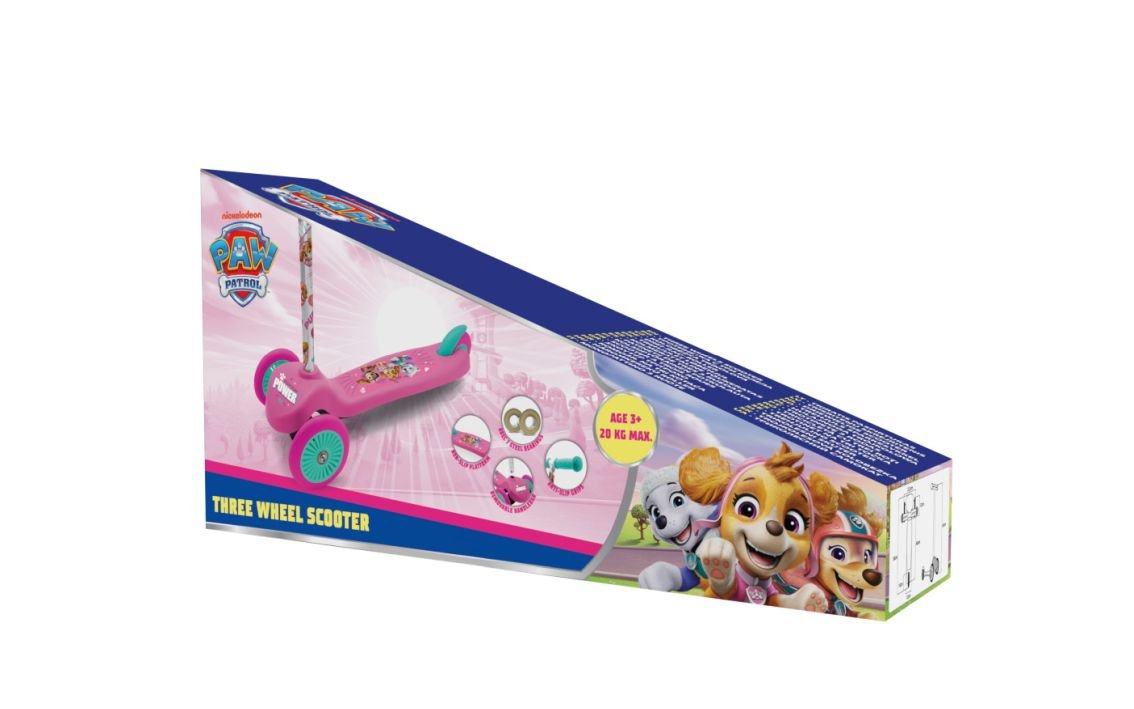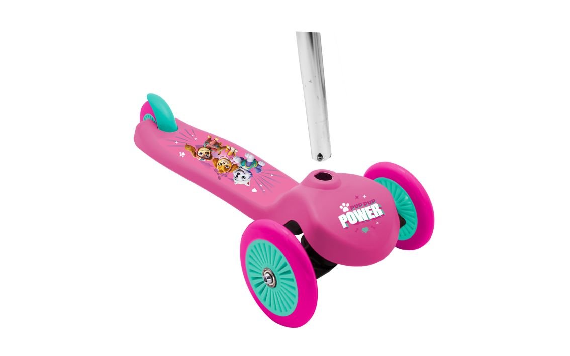 The scooter is decorated with favorite characters from Paw Patrol cartoons, perfectly develops the child’s sense of balance. The unique lean-to-steer system helps kids learn how to balance naturally and safely. A wide, reinforced deck with a non-slip surface gives extra stability, while a rear foot brake ensures safe stops. Ergonomically designed handles are easy to grip, making rides more enjoyable and less tiring. PVC wheels combined with ABEC-5 bearings deliver a smooth, quiet ride. Sturdy aluminum T-bar makes it durable and reliable (fixed/not adjustable). Lightweight and foldable — perfect for travel, storage, or on-the-go adventures.